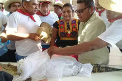 Meksika’nın Oaxaca eyaletinde yer alan San Pedro Huamelula kasabasının Belediye Başkanı Victor Hugo Sosa Garcia bir timsahla evlendi.