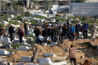 İsrail'in Gazze Şeridi'ne düzenlediği saldırılarda hayatını kaybeden Filistinliler, yakınları tarafından toplu mezarlara defnedilmeye devam ediyor.