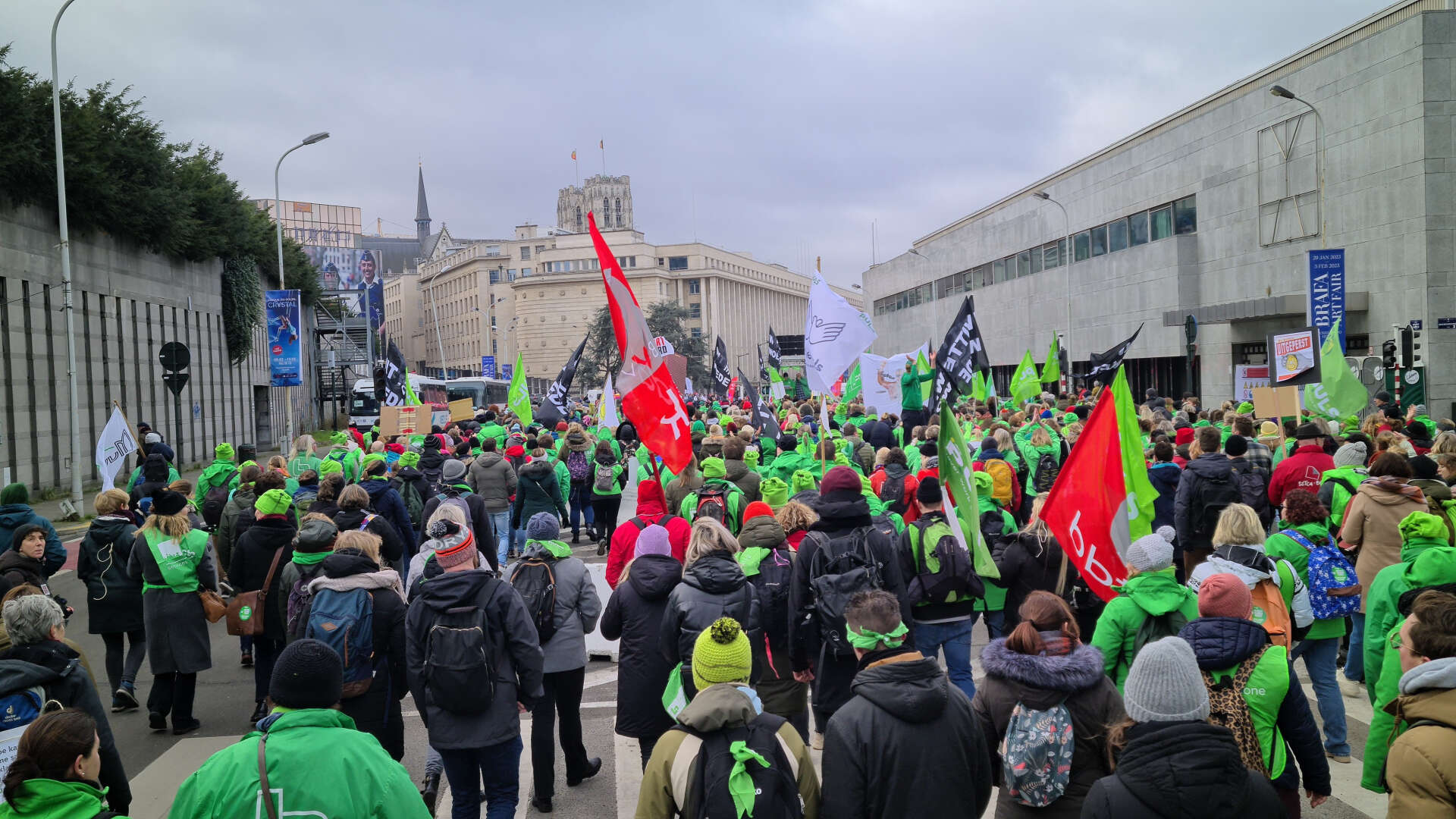Belçika'nın önde gelen sendikalarının ortak kararıyla düzenlenen protestoda, personel eksikliği nedeniyle artan iş yükünün giderilmesi için hükümete çağrıda bulunuldu.