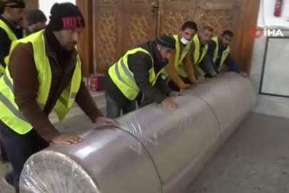 Tarihi Emevi Camii’ne Cumhurbaşkanı Erdoğan’ın seçtiği halılar serilmeye başlandı