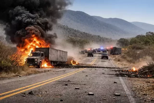 Sabahın erken saatlerinden itibaren çok sayıda kent içi yol ve otoyol, kartel bağlantılı yol kapatma eylemleri nedeniyle ulaşıma kapatıldı. Jalisco'ya bağlı Puerto Vallarta'dan gelen görüntülerde yoğun dumanın gökyüzünü kapladığı, otobüs terminallerinde silah sesleri ve patlamalar nedeniyle panik ve korku yaşandığı görülüyor.