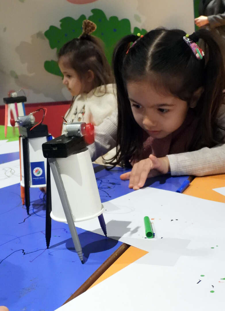 Anaokulu öğrencilerine renkli ve eğlenceli oyun olarak yaptırılan Neşeli Adımlar Atölyesinde, resim yapan ilkel robot yapımı gibi çalışmalar sunuluyor. Çocukların günlük hayatta karşılaştığı problemlere çözüm önerileri getirmeyi hedeflediklerini açıklayan Yıldırım, “Bu atölye sayesinde çocuklarımızda alan farkındalığını ve mantıksal düşünme becerilerini arttırmayı istiyoruz. Buna göre hazırladığımız oyunlar ile algoritmik işlem adımlarını sıralamalarını ve bir problemin çözümü için algoritma geliştirmelerini arzuluyoruz” dedi.