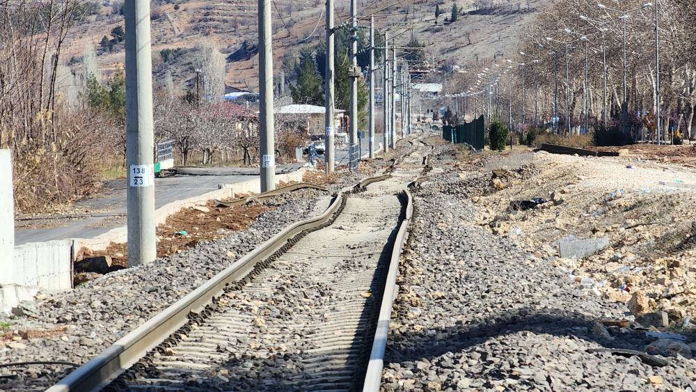 Depremin en çok etkilediği ve büyük hasara yol açtığı Adıyaman’da Gölbaşı ilçesinden geçen demir yolu hattındaki raylar kıvırılırken, rayların bağlandığı traversler ise havada asılı kaldı.
