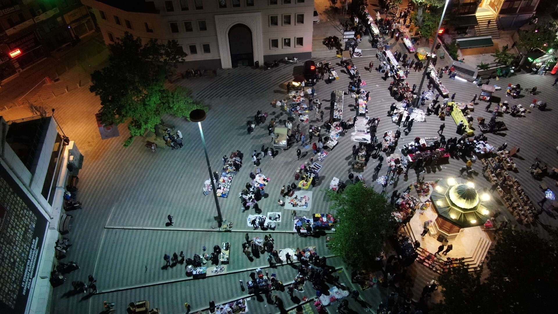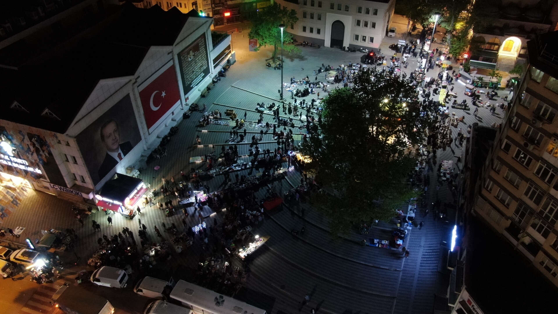 Bursa'da vatandaşlar gece saatlerinde bayram alışverişi yapmak için çarşıya akın etti. Gece saatlerinde yaşanan insan yoğunluğu ise dron ile havadan görüntülendi.
