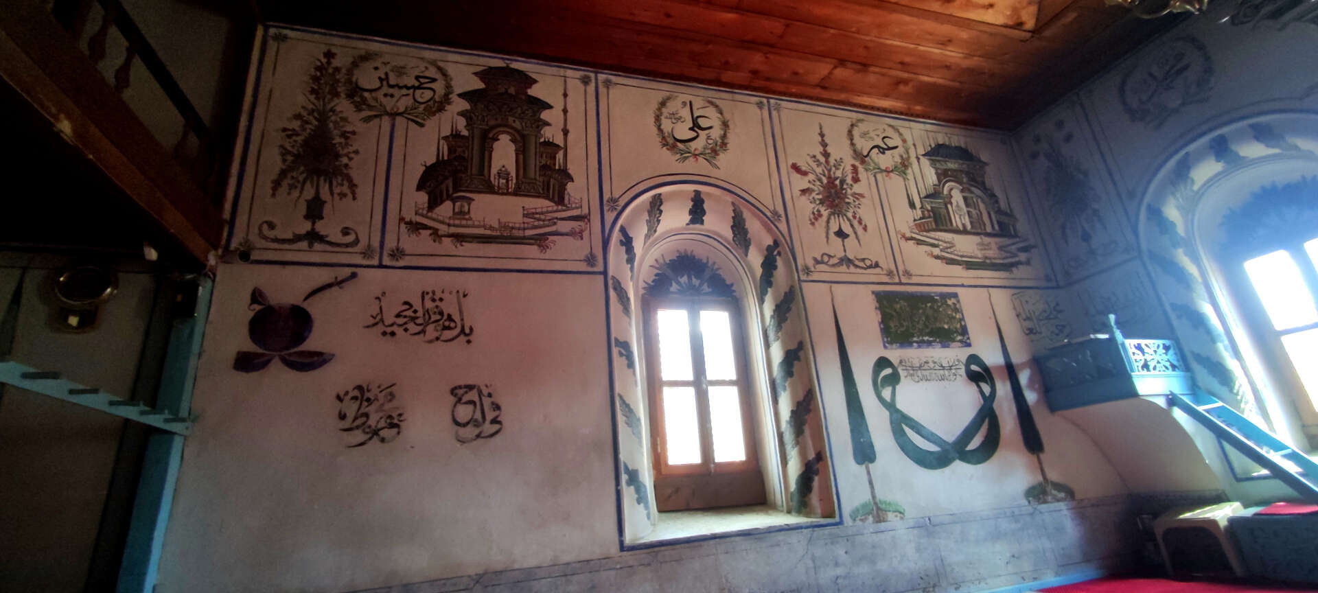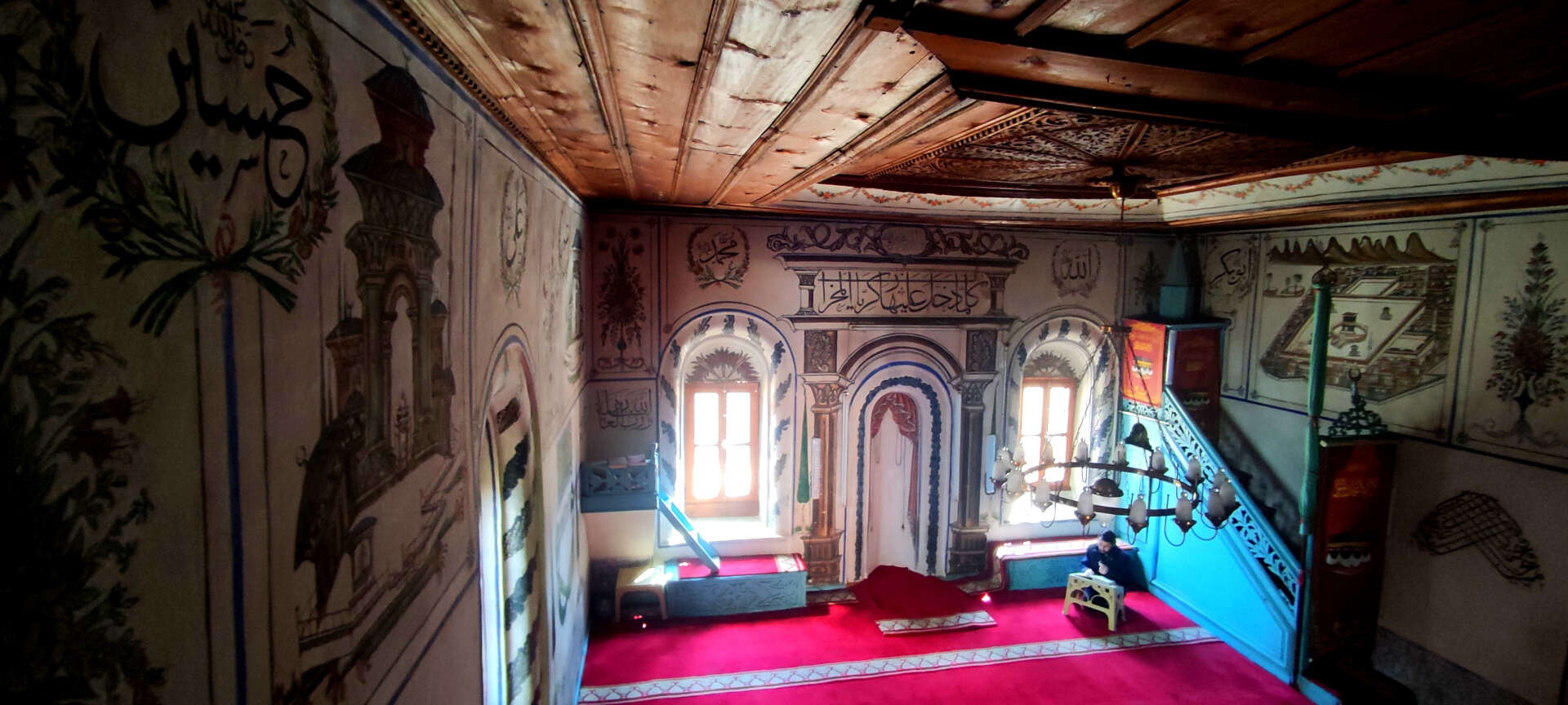 Caminin içerisinde kalem işleri ve ahşap süslemeleri bulunuyor. Caminin duvarlarında, pencere kenarlarında ve mihrapta başta selvi olmak üzere çiçek motifleri, kıvrık dallarla bezeli kalem işleri dikkati çekiyor. Görenleri kendine hayran bırakan tarihi camiye köylüler gözü gibi bakıyor.