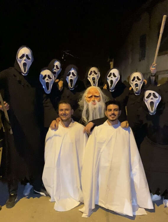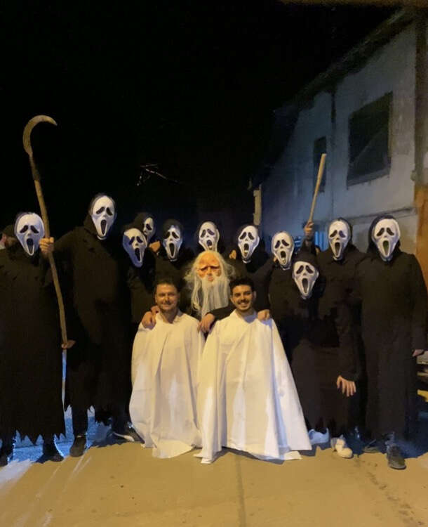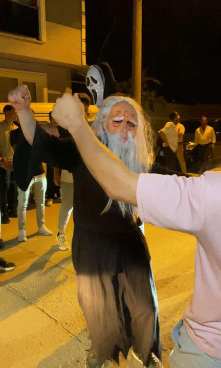 Bursa’nın İnegöl ilçesinde düğün sonrası yapılan eğlencede arkadaşları damadı, çığlık ve gulyabani maskeleri takıp, ellerine meşale ve orak alarak karşıladı.