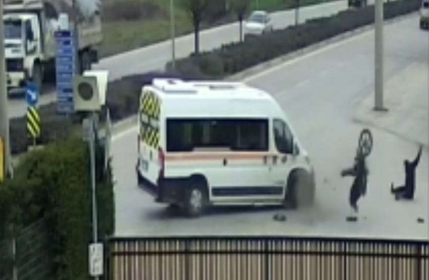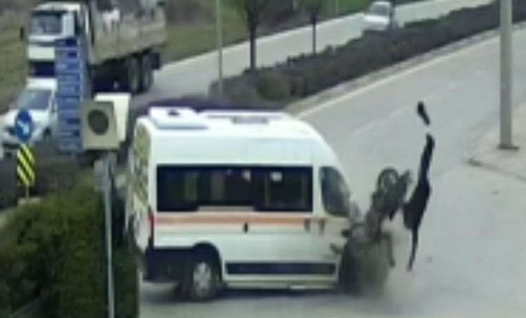 Bursa'da korkunç kaza! Servis aracıyla çarpışan motosikletin sürücüsü böyle havalandı