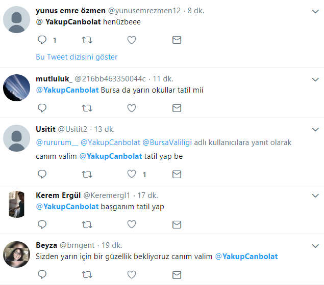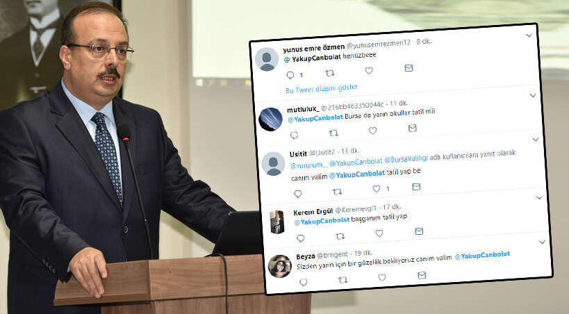 Bursa Valisi Yakup Canbolat'ı tweet yağmuruna tuttular... Bursa'da okullar tatil mi?