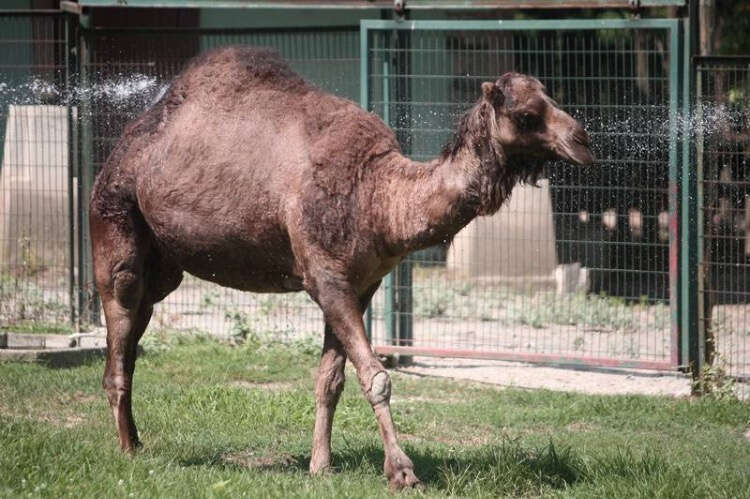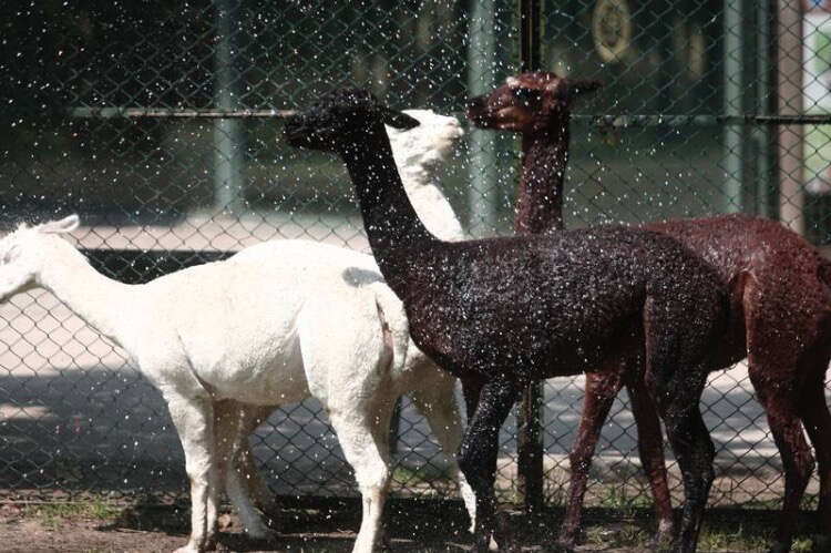 Hayvanat Bahçesi çalışanları deve, inek, alpaka gibi hayvanları hortumla yıkadı.