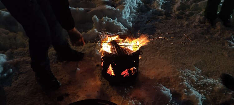 Uludağ'da tatilciler gündüz kayak, gece ise eksi 10 derecede karın üzerinde yaktıkları ateşlerde mangal yapıp saatler süren sohbetler yapıyor.