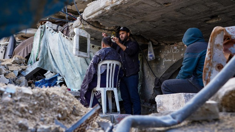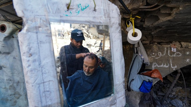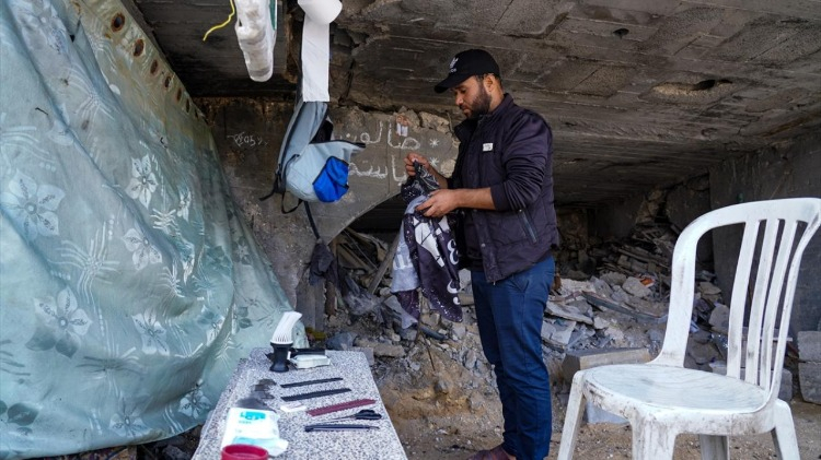 Gazze Şeridi’nin kuzeyindeki Şeyh Rıdvan Mahallesi’nde yaşayan üç çocuk babası berber Bassem el-Ghafari, İsrail saldırılarında evi ve berber dükkanı yıkılmasına rağmen mesleğini icra etmeye devam ediyor.