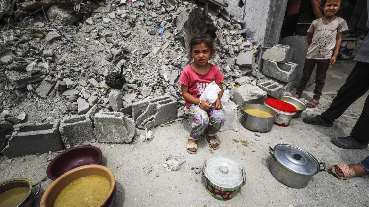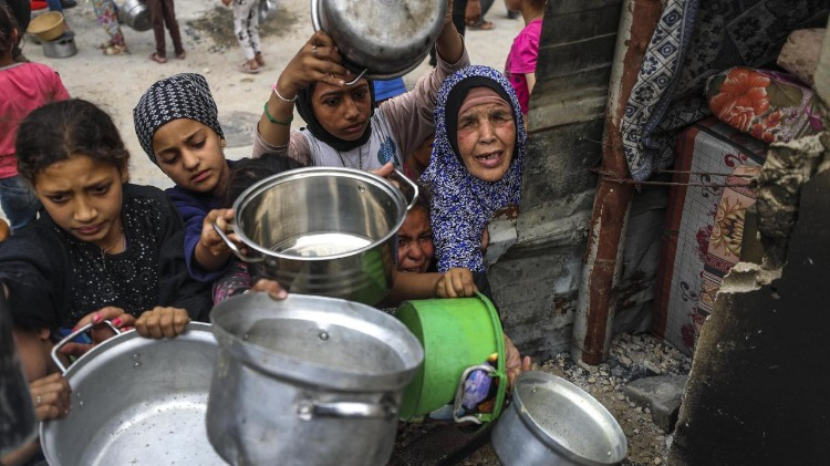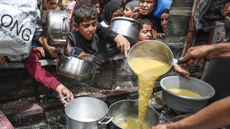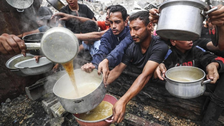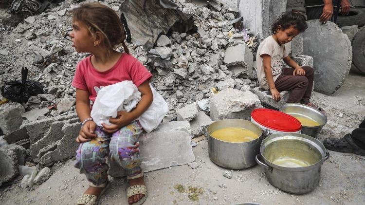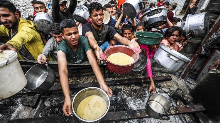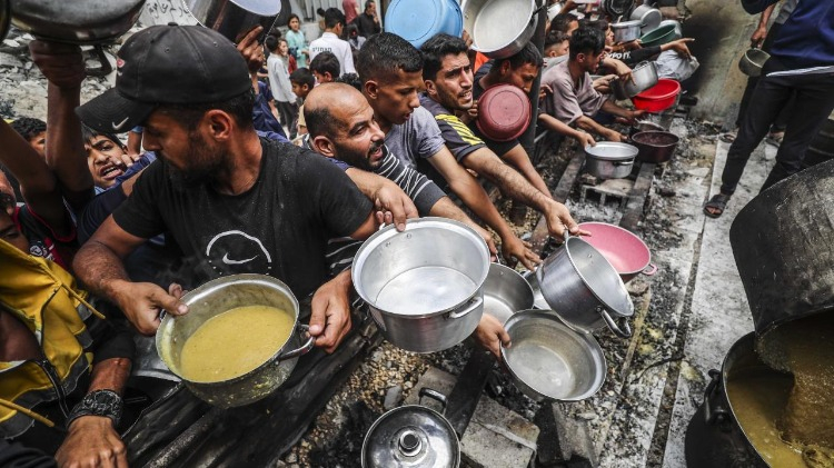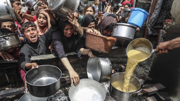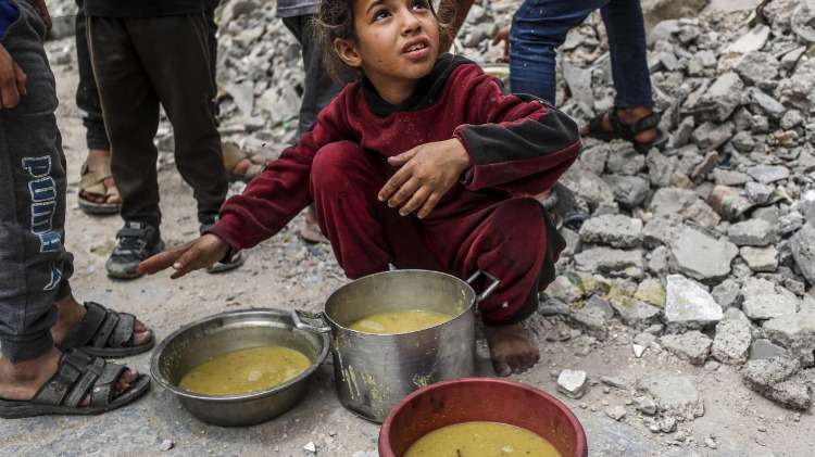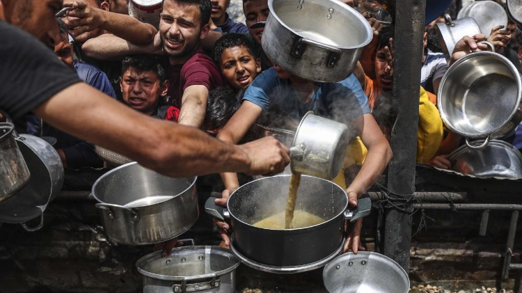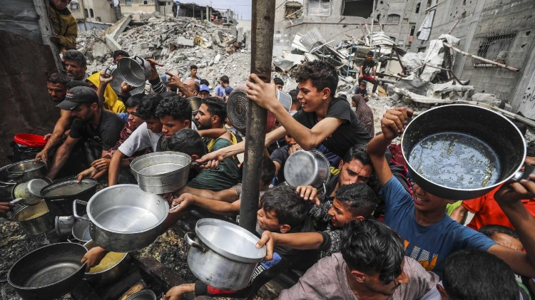 İsrail'in abluka altındaki Gazze Şeridi'ne yönelik acımasız ve yıkıcı saldırıları aralıksız sürerken, uygulanan tam ambargo nedeniyle bölgede derinleşen "insani kriz" devam ediyor. Gazze Şeridi'nin kuzeyindeki Cibaliye Mülteci Kampı'nda, yerinden edilen Filistinlilere hayır kurumları tarafından yemek dağıtımı yapıldı. Yemek alabilmek için aralarında çocukların da bulunduğu çok sayıda Filistinli, izdiham oluşturdu.