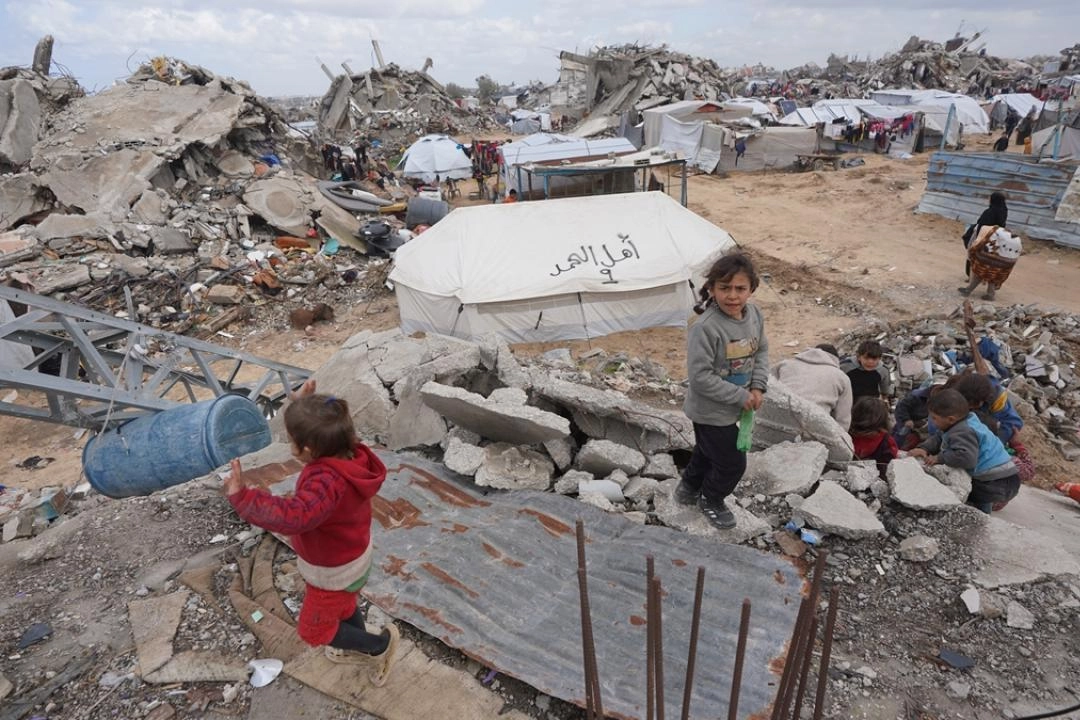 İsrail ordusunun Gazze'ye yönelik saldırılarında evleri tamamen yıkılan çocuklar, aileleriyle birlikte çadırlarda hayata tutunmaya çalışıyor.