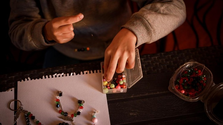 Savaşın yol açtığı zor koşullar altında boncuklardan aksesuarlar yaparak hem yeteneğini ortaya koyuyor hem de yaşadığı psikolojik baskılarla baş etmeye çalışıyor.