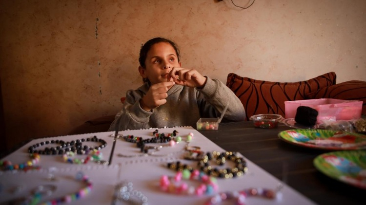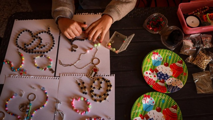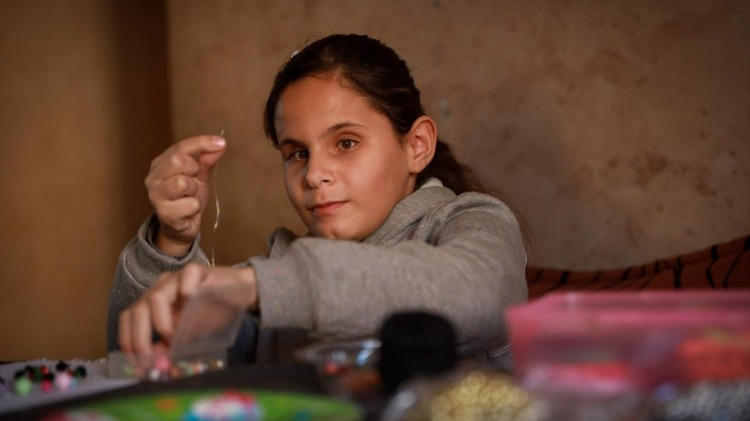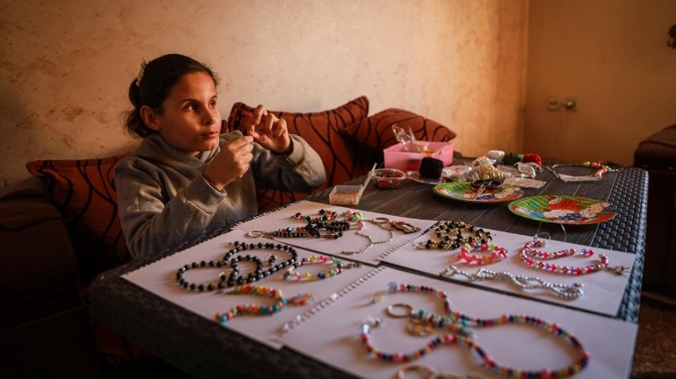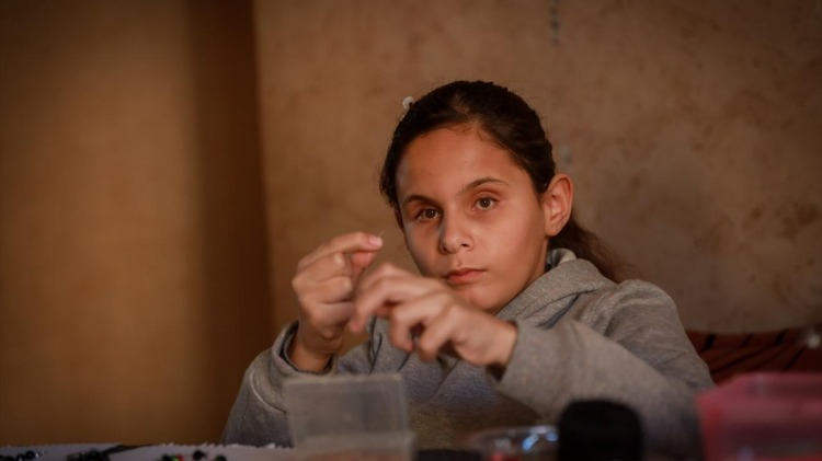 Gazze’de doğuştan görme engelli çocuk, boncuklardan yaptığı el işiyle umut buluyor
