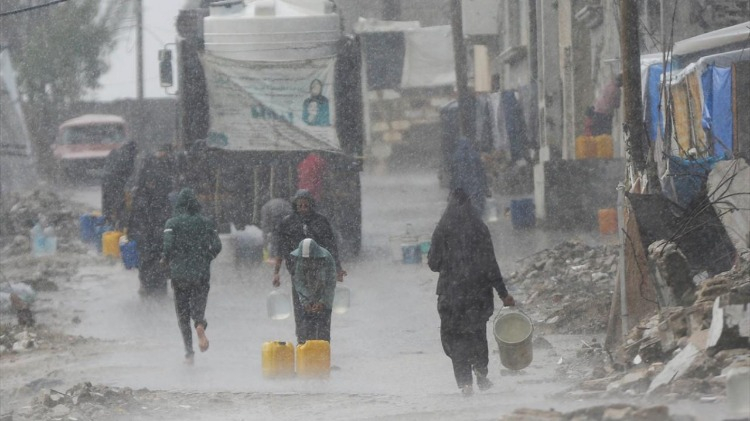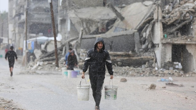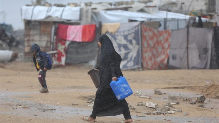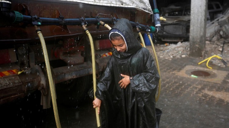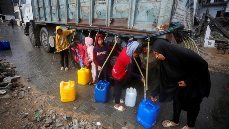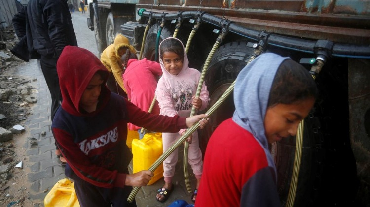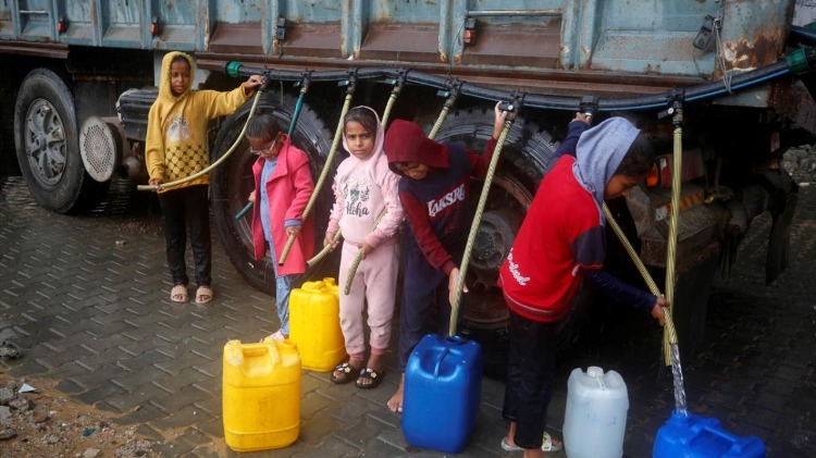 İsrail saldırıları sonucu altyapının ağır hasar gördüğü ve su krizinin yaşandığı Gazze Şeridi’nin orta kesimindeki Deyr Belah kentinde yaşayan Filistinliler, su tankerlerinin dağıttığı suları bidonlara doldurarak yaşam alanlarına taşıdı.