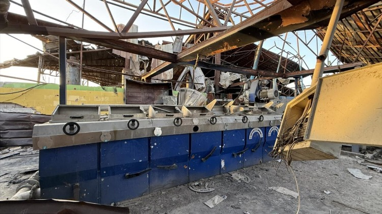 Her hasat döneminde üretimle dolup taşan tesisler, şimdi enkaz ve küle dönmüş durumda.