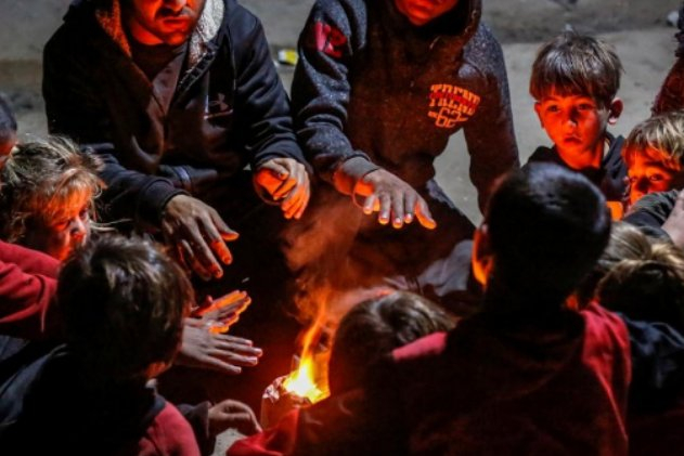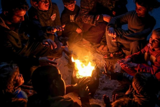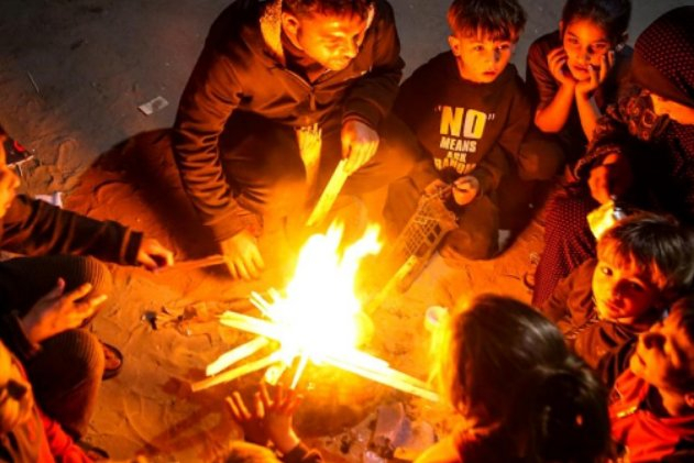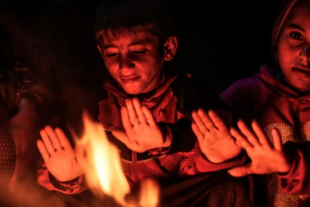 Gazze'deki Filistinliler ateş yakarak soğuktan korunmaya çalışıyor