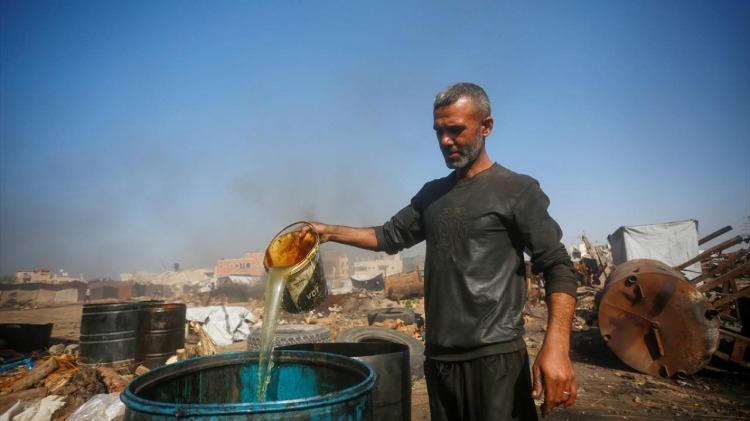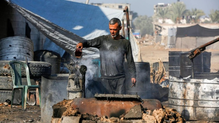 Sağlanan ateşkese rağmen İsrail’in bölgeye yeterli miktarda yakıt girişine izin vermemesi nedeniyle Gazze Şeridi’nin orta kesimindeki Deyr Belah kentinde yaşayan Filistinliler, temel ihtiyaçlarını karşılayabilmek için ilkel yöntemlerle yakıt üretimine yöneliyor.