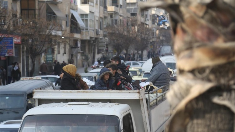 Mahallelerin çıkış noktasında bulunan AA muhabiri, Suriye ordusunun, bölgeyi terk etmek isteyen siviller için açtığı 2 insani geçiş koridorundan binlerce sivilin güvenli bölgelere geçmeye çalıştığını aktardı.