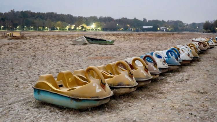 Bir dönem nehir üzerinde hareket eden pedallı su bisikletleri de suyun çekilmesiyle karaya oturdu.