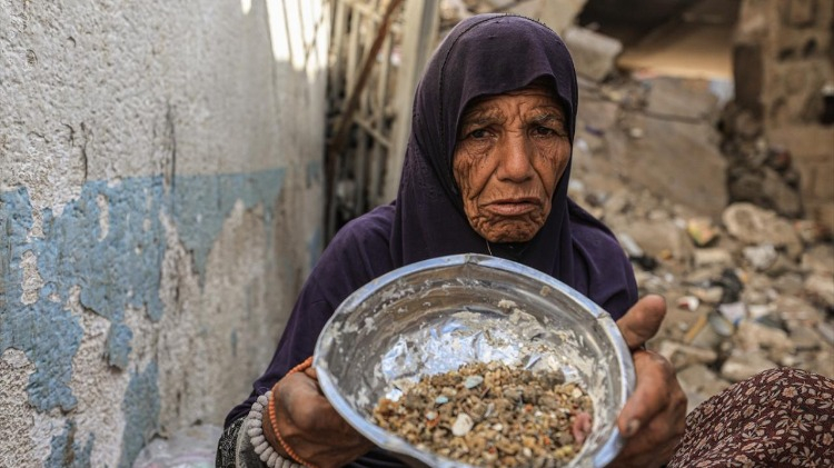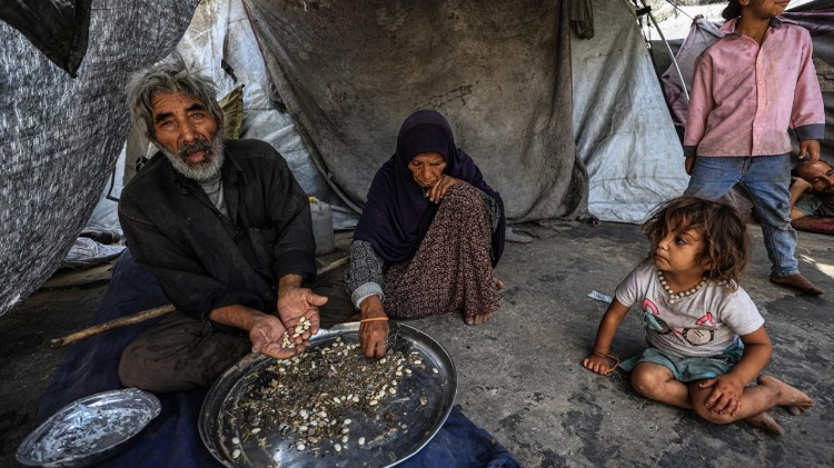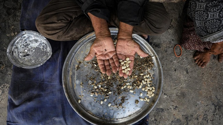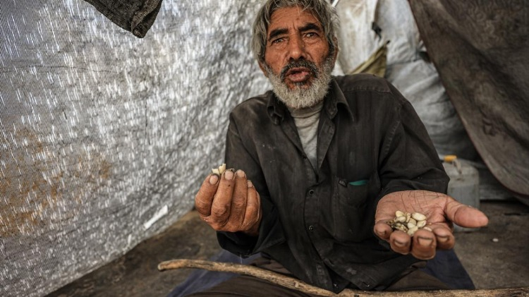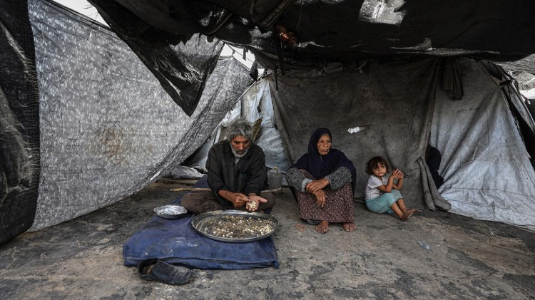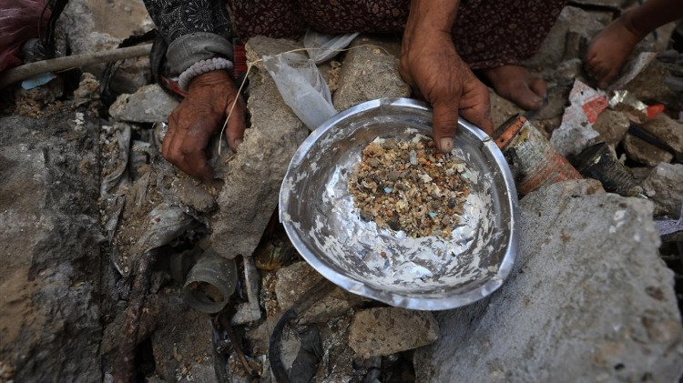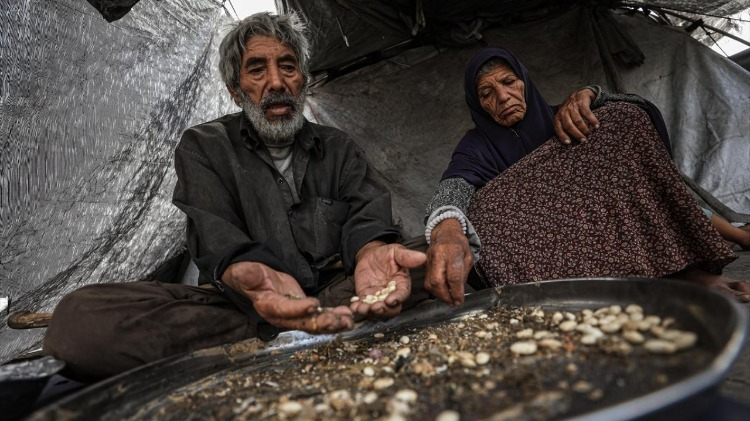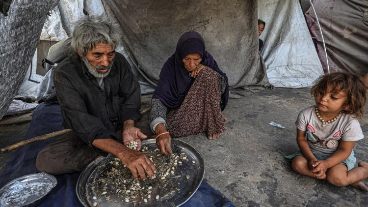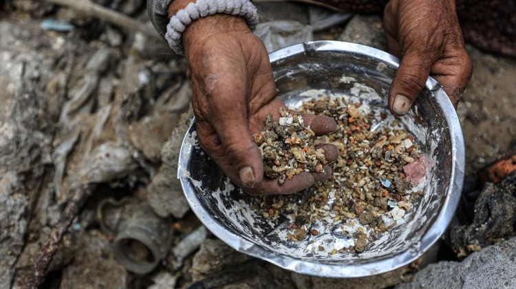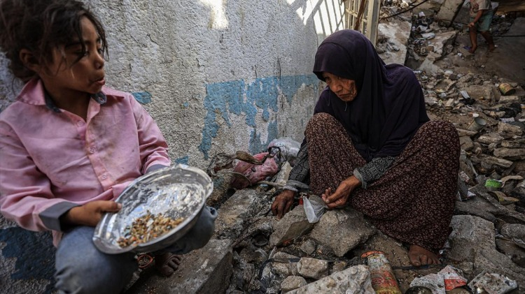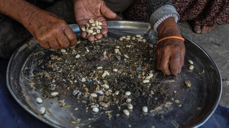 İsrail'in açlığa mahkum ettiği Gazzeliler, atık yemeklerle karınlarını doyurmaya çalışıyor. İsrail saldırıları nedeniyle Gazze'nin kuzeyindeki Beyt Lahya'dan Yermuk Kampı'na göç eden Filistinli Abdülhadi Subh, gıda kıtlığının yaşandığı kentte eşi ve çocuklarıyla birlikte atık yemekleri topluyor.