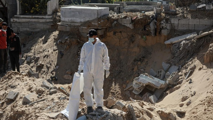 Gazze Şeridi'nin kuzeyindeki İsrail’in kara harekatı sırasında mezarlarda ağır hasar oluştu. İsrail ordusu, Beyt Lahya bölgesindeki mezarlığı kazarak cansız bedenleri çıkartıp tahrip etmişti. Filistin sivil savunma ekipleri, tahrip edilen mezarlıktaki cenazeleri toplayıp yeniden defin işlemi gerçekleştirdi.