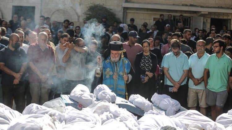 İsrail'in Gazze'deki kilise saldırısında hayatını kaybedenler için cenaze töreni düzenlendi