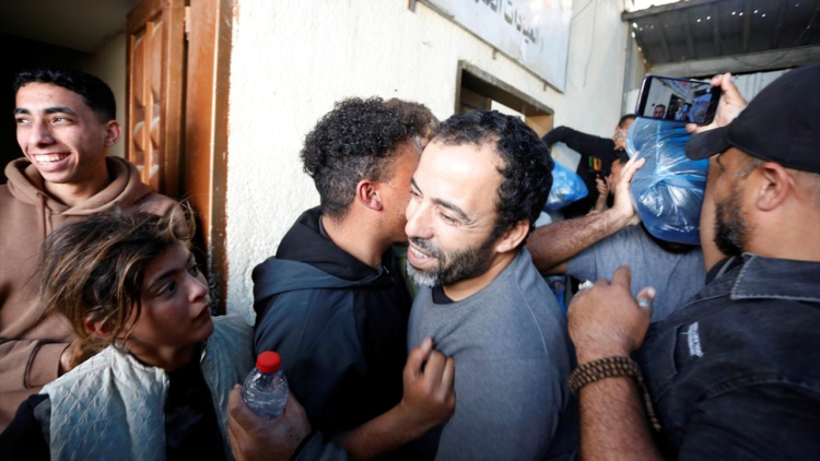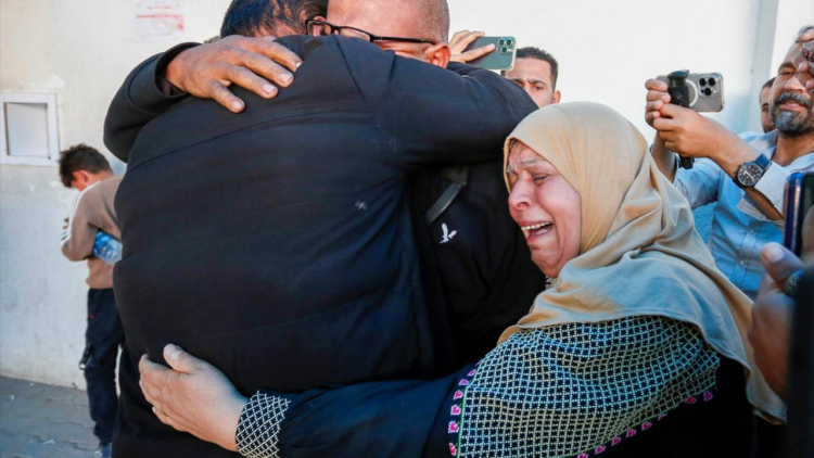 İsrail güçleri tarafından serbest bırakılan 12 Filistinli esir, Uluslararası Kızılhaç Komitesi aracılığıyla Gazze Şeridi’nin orta kesiminde yer alan Deyr Belah’a ulaştırıldı.