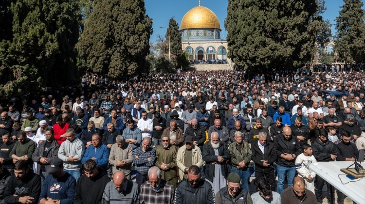 İsrail kısıtlamalarına rağmen binlerce kişi ramazan ayının ilk cumasını Aksa'da kıldı
