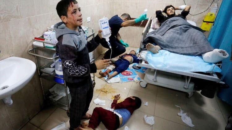 İsrail ordusunun abluka altındaki Gazze Şeridi’ne yönelik yoğun bombardımanı devam ediyor. Deir Al Balah kentine düzenlenen saldırı sonucu aralarında çocukların da bulunduğu yaralılar, tedavi için Aksa Şehitleri Hastanesi'ne getirildi.