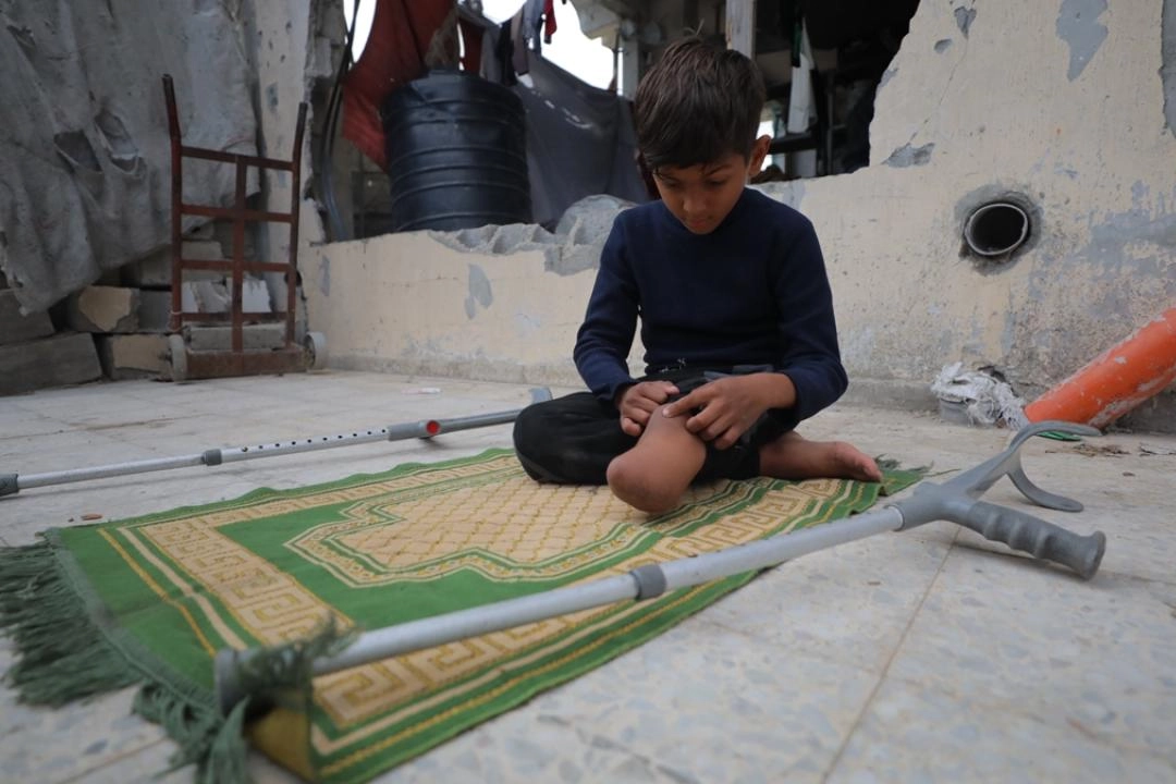 İsrail saldırısında bacağını kaybeden Filistinli çocuk zor şartlar altında yaşamını sürdürüyor