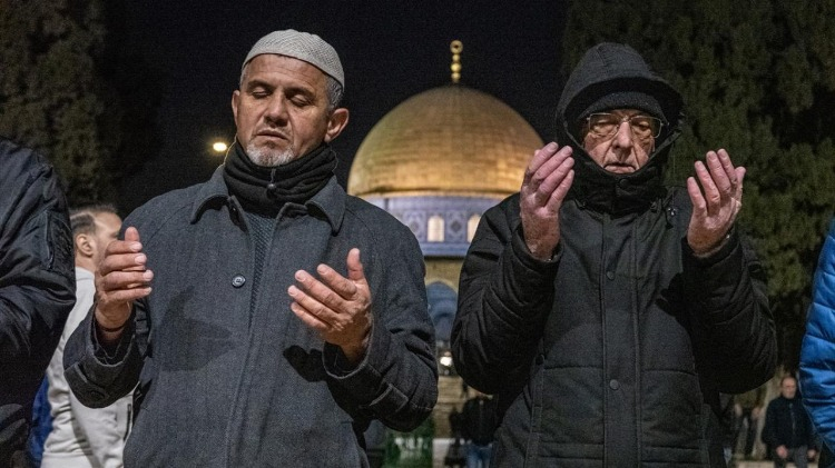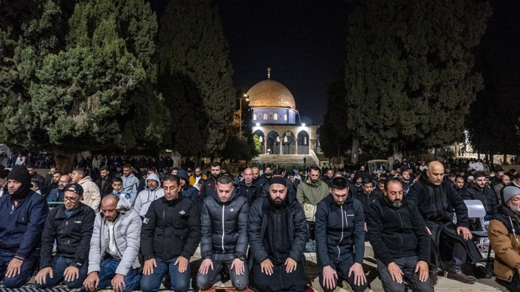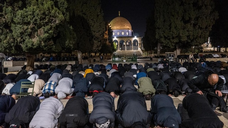 İsrail işgali altındaki Doğu Kudüs'ün Eski Şehir bölgesinde bulunan Mescid-i Aksa'da ramazanın ilk teravih namazı eda edildi. Müslümanlar, teravih namazını Harem-i Şerif avlusunda kıldı.