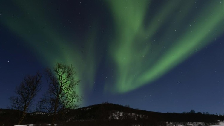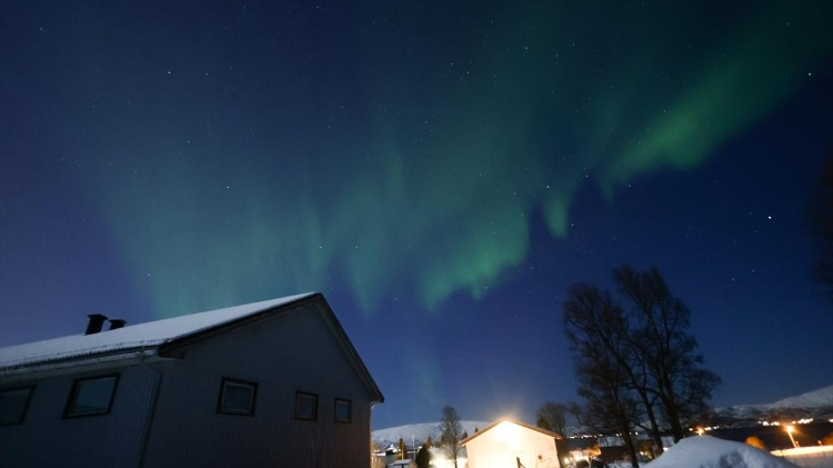 Yeryüzünün manyetik alanı ile Güneş'ten gelen yüklü parçacıkların etkileşimi sonucu ortaya çıkan Kuzey Işıkları (Aurora Borealis), Norveç'in Tonsvik bölgesinde görüntülendi.