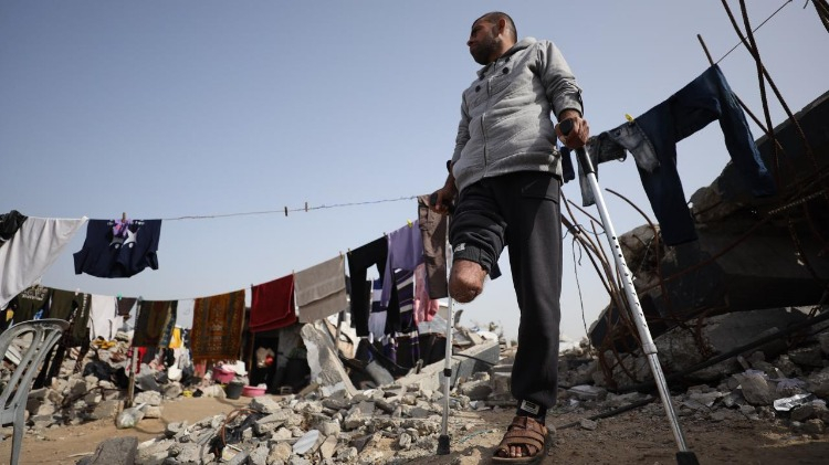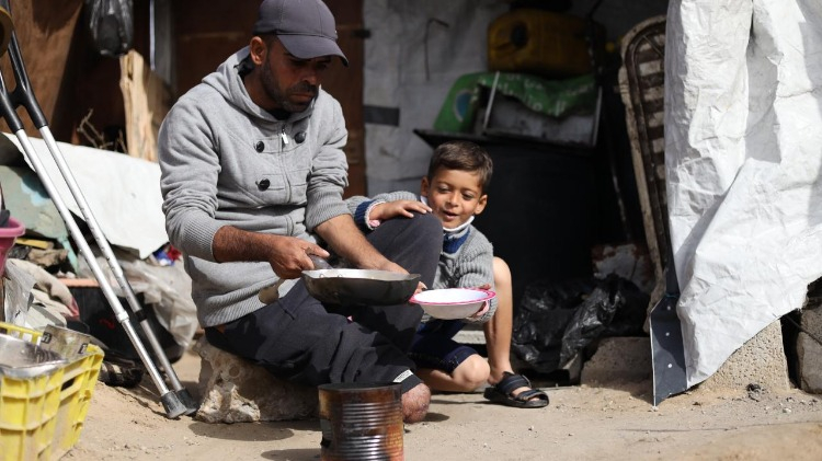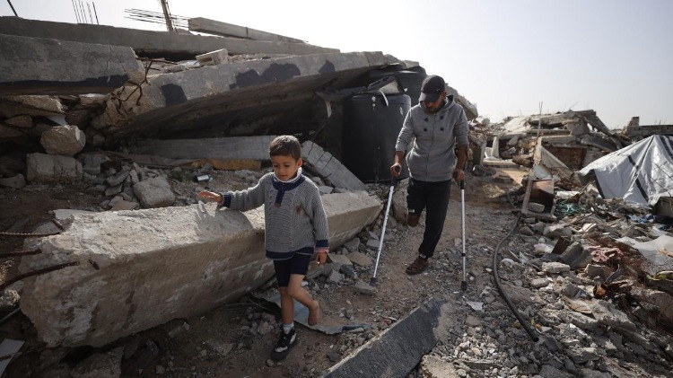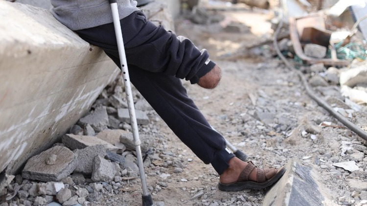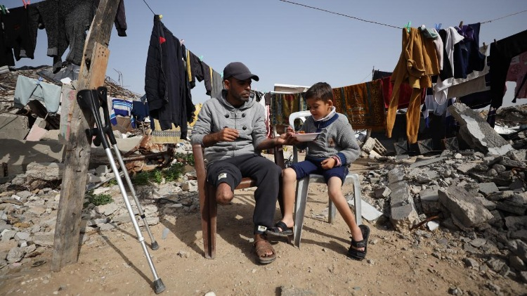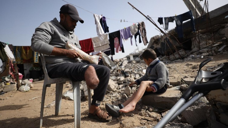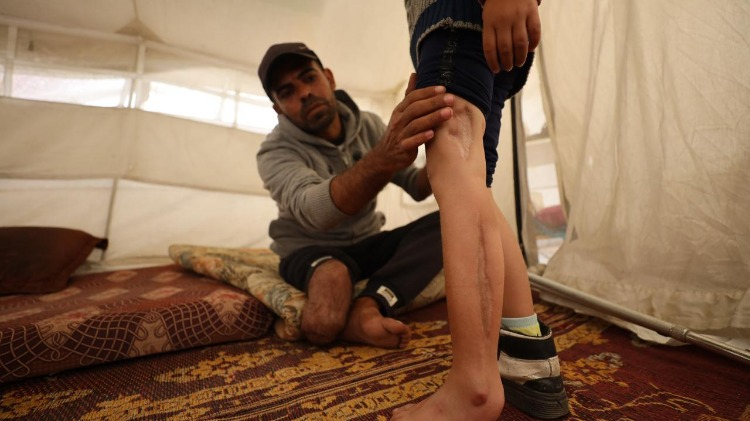 İsrail saldırısında bacağını kaybeden Rasim Diyab Mukat ve oğlu kalıcı engellerle mücadele ediyor.