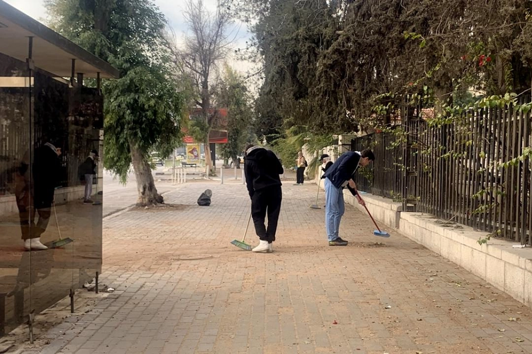 Suriye'de Baas rejiminin devrilmesinin ardından, başkent Şam'da, gönüllü gençler sokakları temizlemeye başladı.