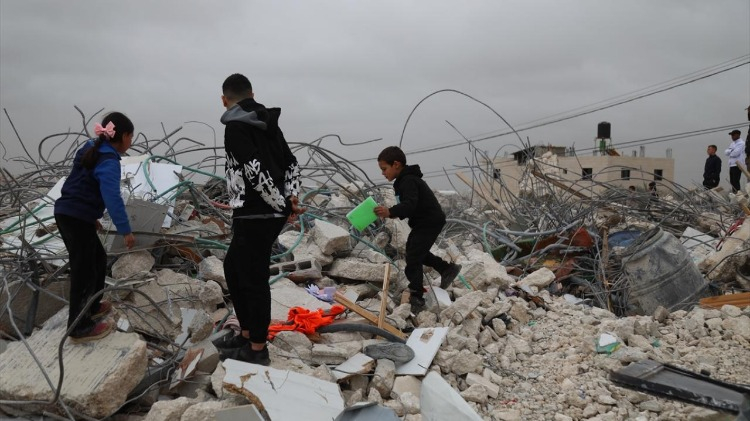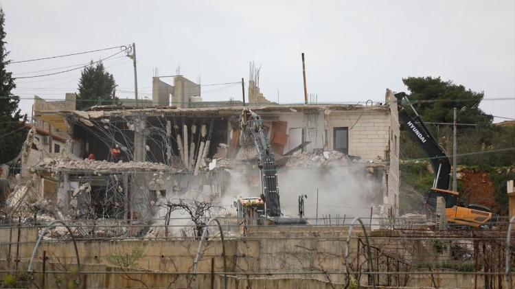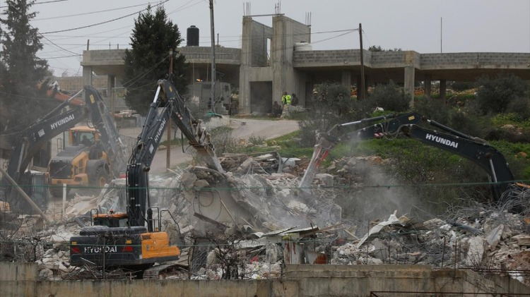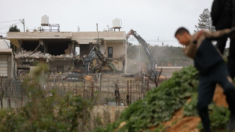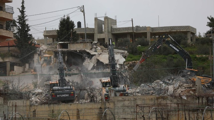 Soykırımcı İsrail ordusu, işgal altındaki Batı Şeria’nın Beytüllahim kentine bağlı El-Hıdır beldesinde Filistinlilere ait 3 katlı bir binayı, “ruhsatsız olduğu” iddiasıyla yıktı.