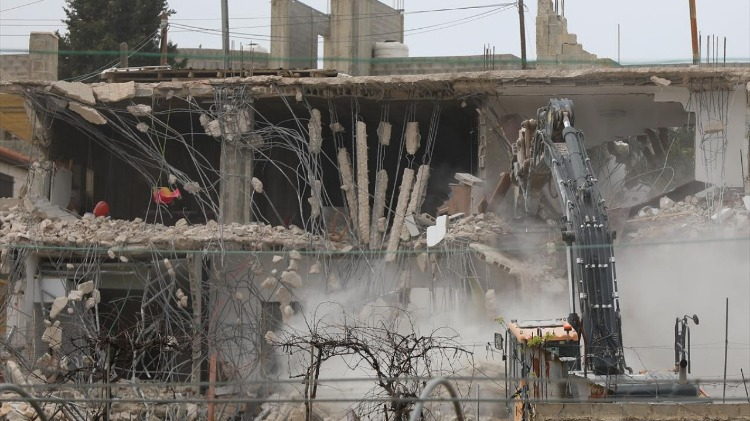 Soykırımcı İsrail güçleri, işgal altındaki Batı Şeria’da Filistinlilere ait 3 katlı bir binayı yıktı