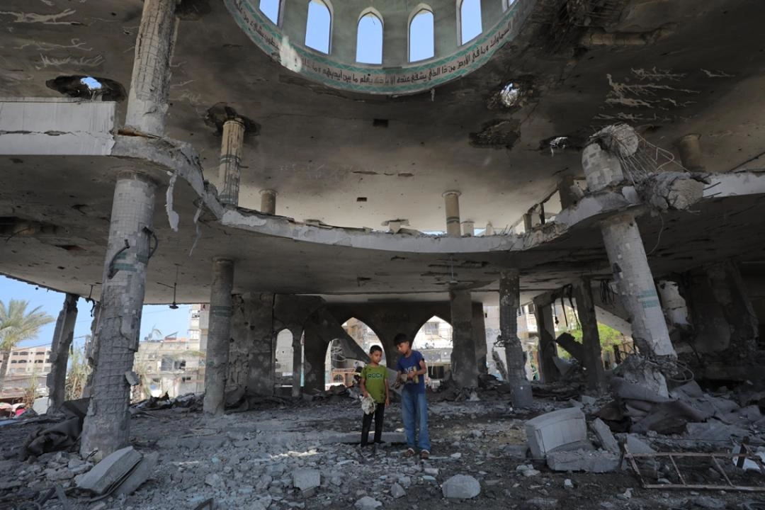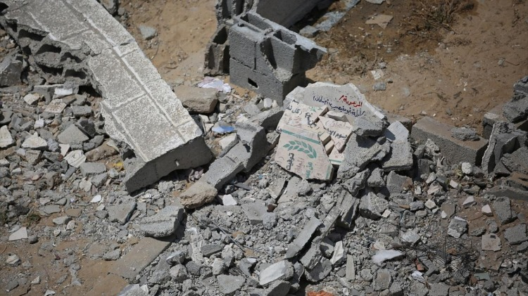 İsrail ordusunun Gazze Şeridi'nin orta kesiminde yer alan Deyr Belah kentine düzenlediği saldırıda El-Ensar Cami ağır hasar aldı.