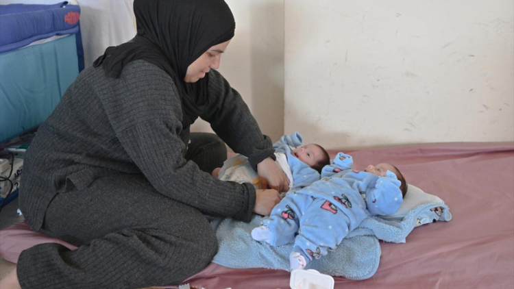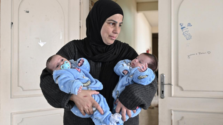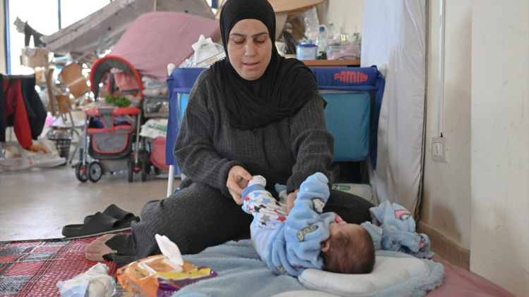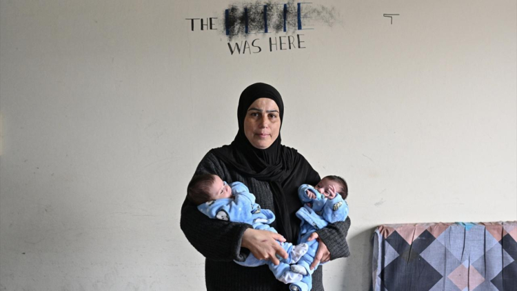 Adşit el-Kusayr beldesinden yerinden edilen 36 yaşındaki Ghada Mohammed Fadel, Sayda’da barınma merkezine dönüştürülen Lübnan Üniversitesi’nde ikiz bebekleri Muhammed ve Mehdi ile birlikte kalıyor.