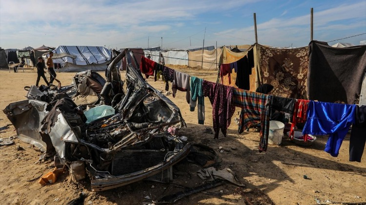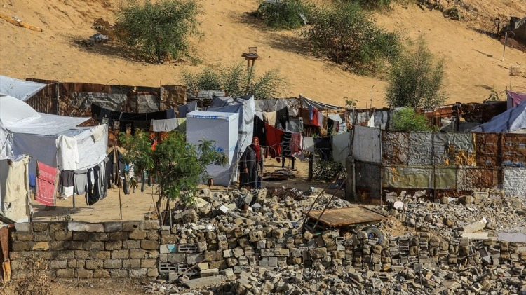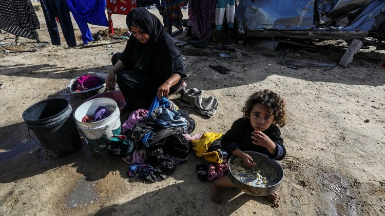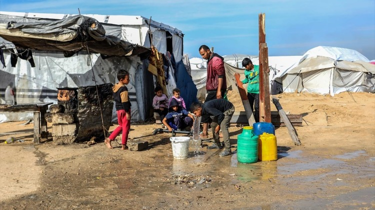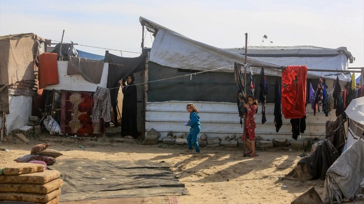 Abluka altındaki Gazze Şeridi’nin güneyinde, Refah kenti yakınlarında derme çatma çadırlarda kalan yerinden edilmiş Filistinli aileler, olumsuz hava koşulları ve yetersiz barınma imkânları nedeniyle giderek ağırlaşan yaşam koşullarıyla mücadele ediyor.