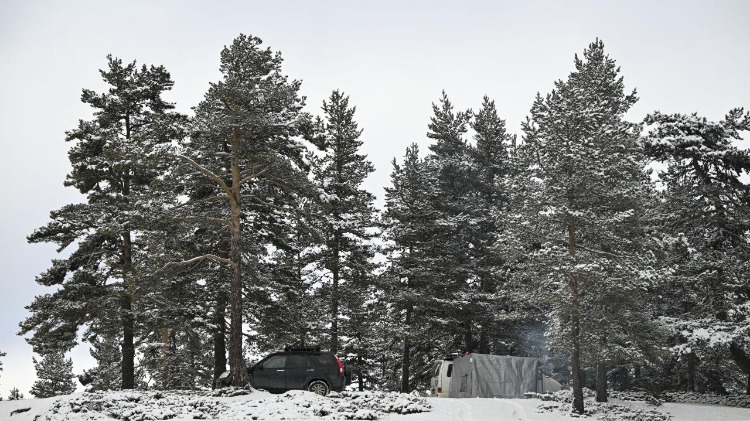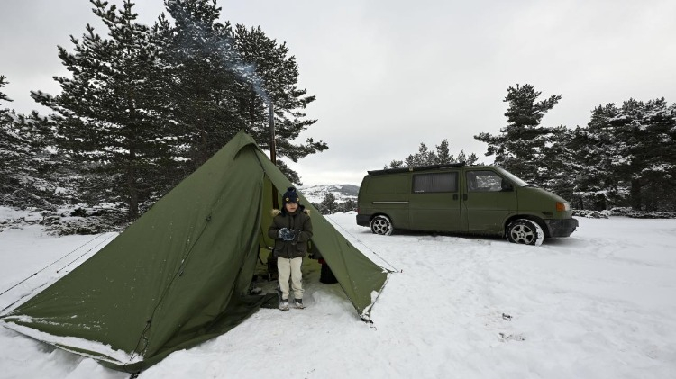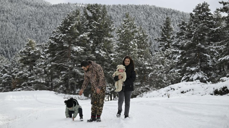 Ankara'nın Kızılcahamam ilçesinde bulunan Işık Dağı, kar yağışı sonrası beyaz örtüyle kaplandı. Hafta sonu tatilini fırsat bilen bazı vatandaşlar, beyaza bürünen ormanlık alanda kamp yaptı.