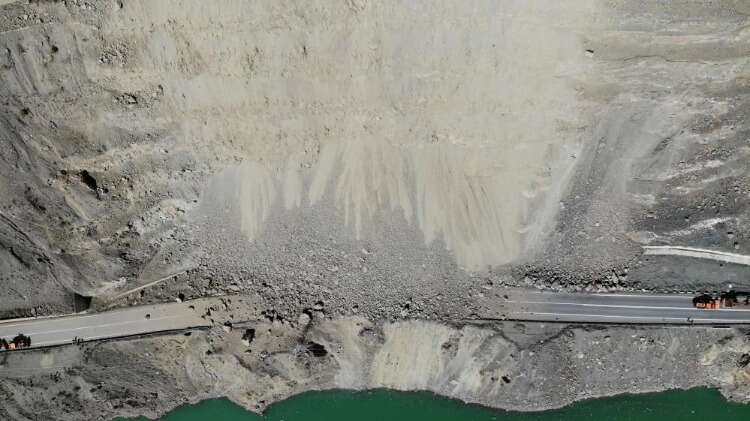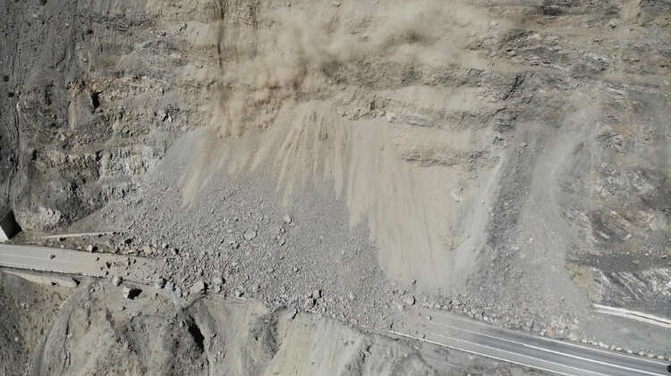 Artvin-Erzurum karayolu meydana gelen heyelan nedeniyle çift taraflı olarak ulaşıma kapandı. Heyelanın boyutu gün ağarınca havadan görüntülendi.