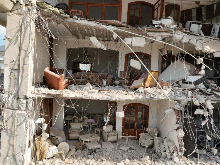 Kahramanmaraş merkezli meydana gelen ve 11 ili etkileyen 2 büyük depremin 17'nci gününde, ağır yaralı Hatay’da hasar gören evlerin içi dron ile görüntülendi.