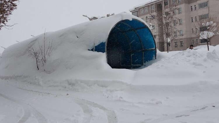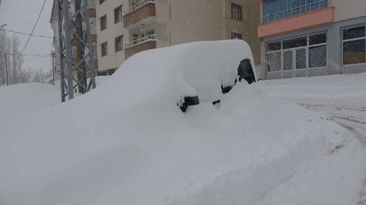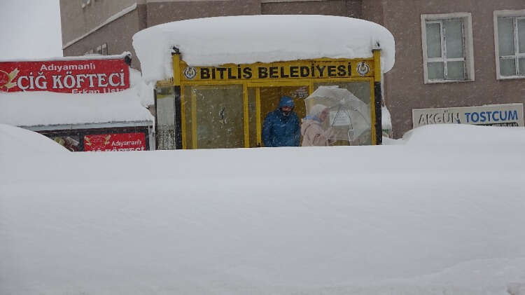 Bitlis'te 302 köy yolu ulaşıma kapandı, okullar açılmadan tatil edildi. Tek katlı evler, araçlar, trafik ışıkları, otobüs durakları yağan yoğun kardan kayboldu.