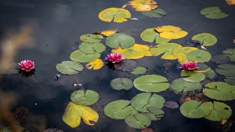 Parkın içinde yer alan gölde yetişen nilüferler, doğayı süslüyor.