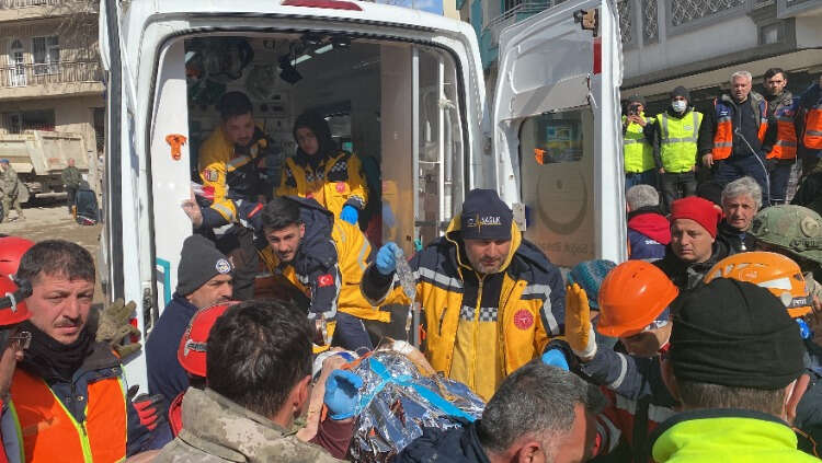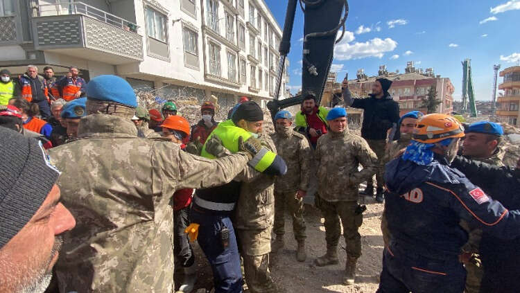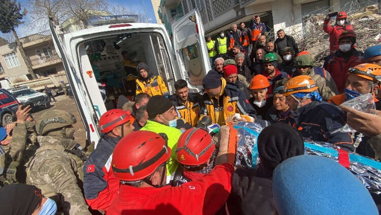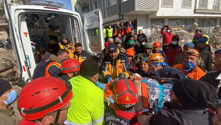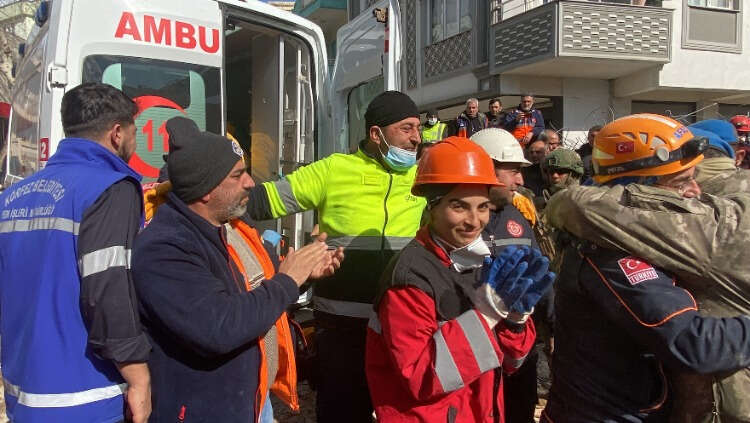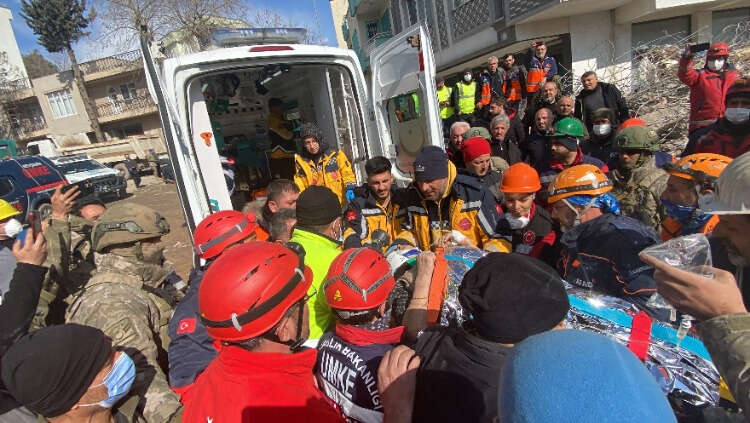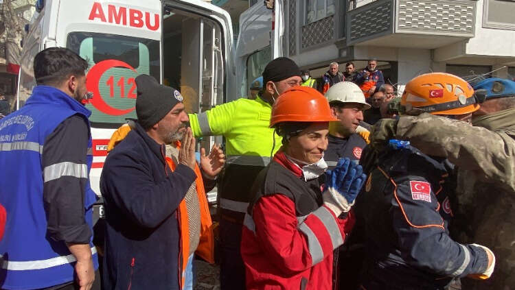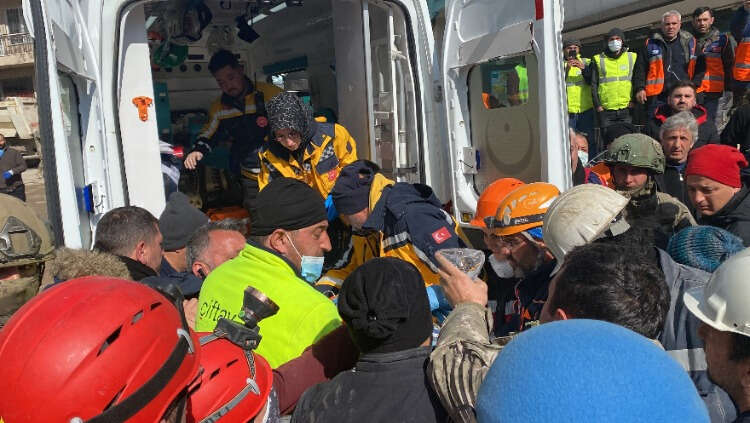 Kahramanmaraş’ta Kalkan Apartmanının enkazından 74 yaşındaki Cemile Kekeç, depremin 10. gününde 227. saatte sağ olarak çıkarıldı. Kekeç, uzun uğraşlar sonucunda enkazın altından çıkarılarak ambulansla hastaneye sevk edilirken, kurtarma ekipleri birbirlerine sarılarak bir can daha kurtarmanın sevincini yaşadı.