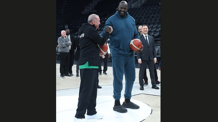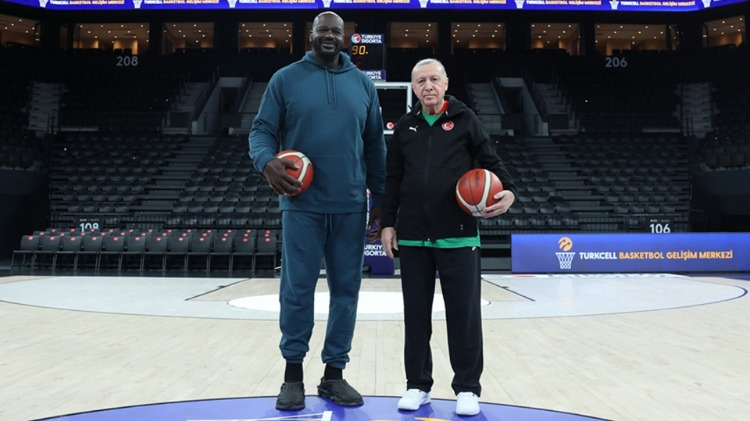 Cumhurbaşkanı Erdoğan, eski NBA oyuncusu Shaquille O'Neal ile basketbol oynadı