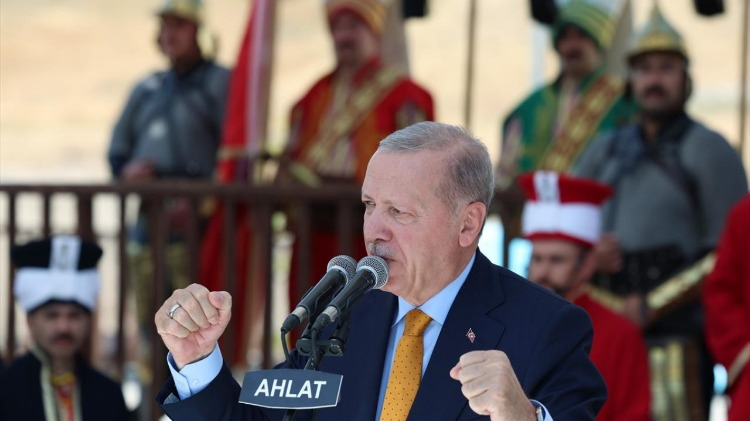 Malazgirt Zaferi'nin 954. yıl dönümü kutlamaları kapsamında Bitlis'in Ahlat ilçesine gelen Cumhurbaşkanı Recep Tayyip Erdoğan, Selçuklu Meydan Mezarlığı'nı ziyaret etti.