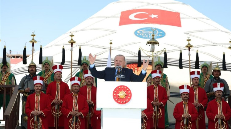 Cumhurbaşkanı Erdoğan, Okçular Vakfınca Malazgirt Zaferi`nin 954`üncü yıl dönümü dolayısıyla Bitlis`in Ahlat ilçesinde düzenlenen etkinliklere katıldı.